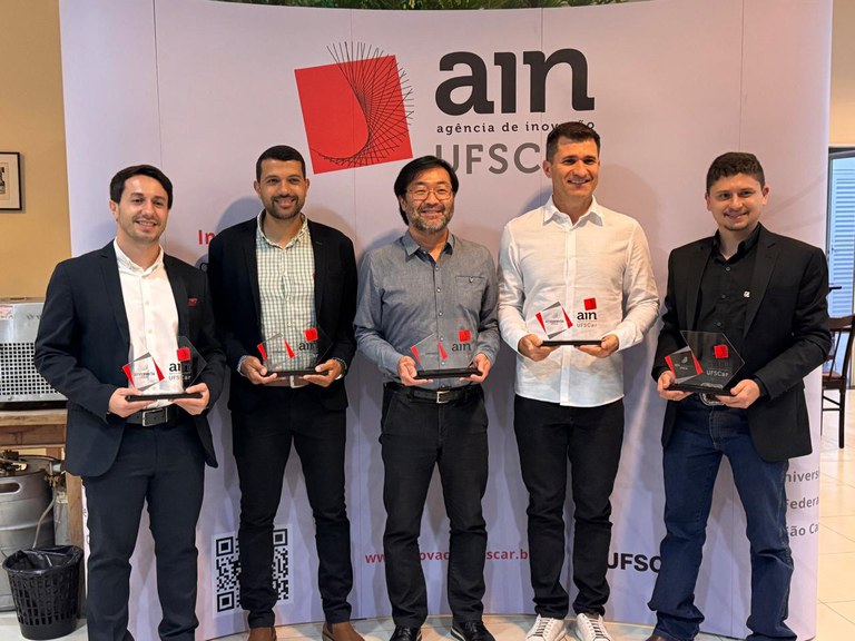 A Agência de Inovação da UFSCar realizou, na noite de ontem (13/11), a Cerimônia de Reconhecimento aos Inventores e Licenciantes da UFSCar, no Auditório da ADUFSCar, no Campus São Carlos, como parte da programação do AInConecta Especial 2025.